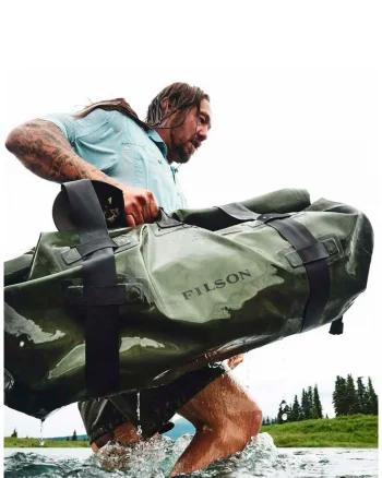 La Dry Duffle Bag Green de Filson mantiene el equipo seco y protegido, incluso cuando está completamente sumergido.